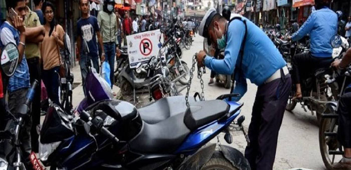 काठमाडौं । ट्राफिक प्रहरीले अनाधिकृत रुपमा फुटपाथ तथा सडकमा पार्किङ गर्ने ३८ हजार ८८६ सवारीसाधनलाई कारवाही गरेको छ । महानगरीय ट्राफिक प्रहरी महाशाखाले आर्थिक वर्ष २०७५/०७६ मा जथाभावी रुपमा फुटपाथमा पार्किङ गर्ने उक्त सवारीसाधनलाई कारवाही गरेको हो । महाशाखाले आव २०७४/०७५ मा ३३ हजार ७०३ सवारीसाधनलाई कारवाही गरेको थियो ।