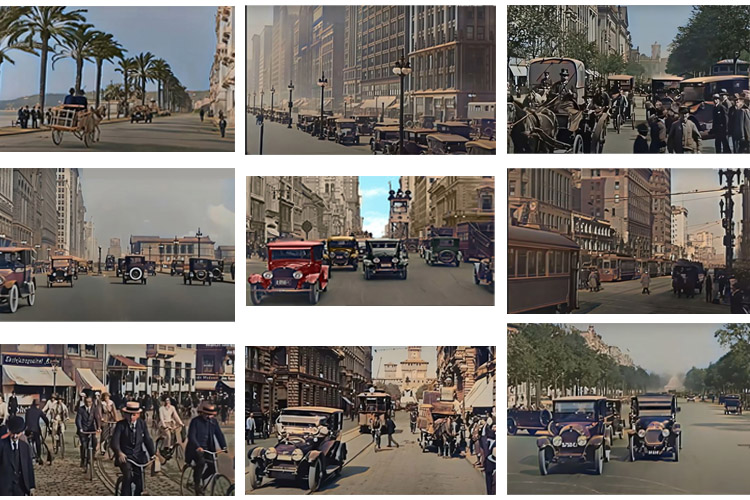 नास नामक एक संस्थाले हालै मात्र ती दुर्लभ फुटेजहरु संकलन गरेर रंगीन बनाई यूट्यूबमा अपलोड गरेको छ । करिब ८ मिनेटको उक्त भिडियोमा अमेरिकाको न्यूयोर्क, शिकागो, मिसीगन, सानफ्रान्सीस्को त्यस्तै वेलायतको लण्डन, जर्मनको बर्लीन, स्वीडेनको स्टकहोम, डेनमार्कको कोपनहेगन, नेदल्याण्डको आम्सरडम, फ्रान्सको पेरिस तथा सुइजरल्याण्डको जेनेभा, इटालीको मिलान जस्ता सहरमा १०० वर्षअघि कस्ता साधन थिए भन्ने रमाइला दृष्यहरु देख्न सकिन्छ ।