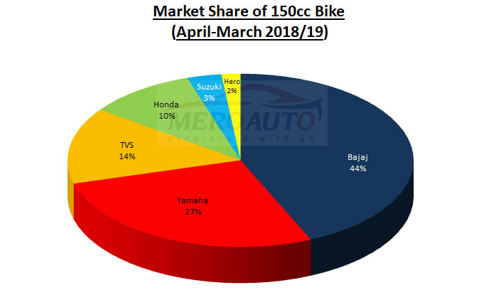 त्यस्तै पाँचौं स्थानमा सुजुकी रहेको छ, जुन २७ सय ४ वटा बिक्री भएको छ । १५० सीसी सेगमेन्टमा सुजुकीको बजार हिस्सा ३ प्रतिशत रहेको छ । हिरोले १ वर्षमा १५० सीसी सेगमेन्टमा १५ सय वटा मात्र मोटरसाइकल बिक्री गरेको छ । यो सेगमेन्टमा होरोको बजार हिस्सा २ प्रतिशत मात्र रहेको छ ।