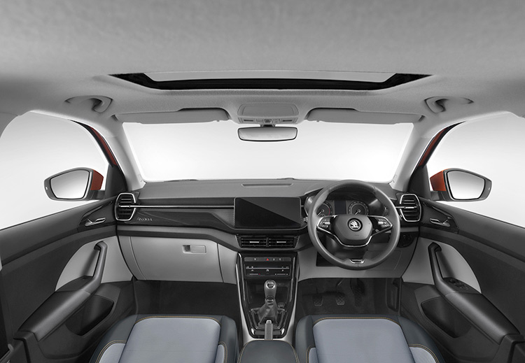 स्कोडाका अन्य मोडेलझैं कुशकमा पनि क्वालिटी इन्टेरियर रहेको छ । यसमा स्कोडा सपुर्बमा जस्तै टु-स्कोप स्टेरिङ ह्विल रहेको छ । यसले स्टेरिङलाई प्रिमियम बनाएको छ । कुशकको टप स्पेक भेरियन्टको स्टेरिङ ह्विल, गियर नब र सिटमा लेदर अपहोल्स्ट्री रहेको छ ।