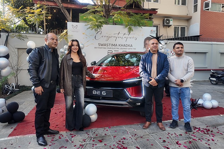 काठमाडौं । महिन्द्राको नयाँ इलेक्ट्रीक एसयूभी नायिका स्वस्तिमा खड्काले लिएकी छिन् । महिन्द्राको आधिकारिक बिक्रेता अग्नि इनकर्पोरेटेड प्रालिले अघिल्लो महिनाबाट बिक्री थालेको बीई सिक्स नायिका खड्काले लिएकी हुन् ।