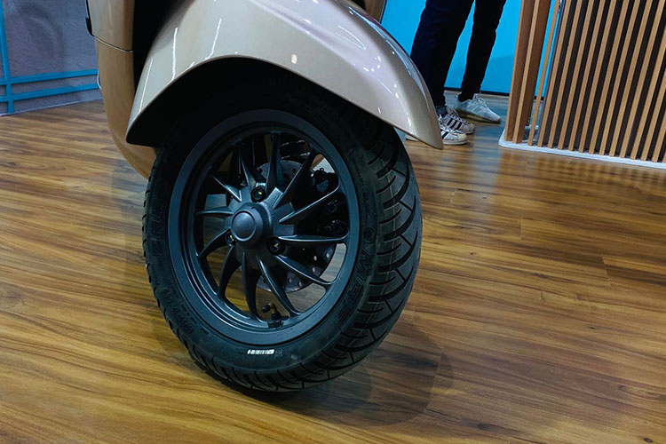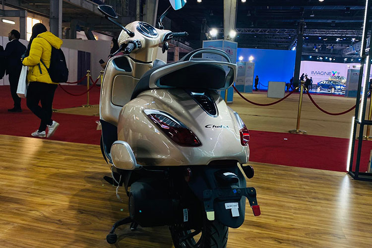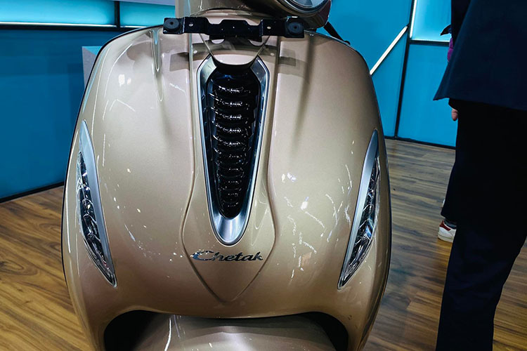 कम्पनीले ल्याएको पहिलो इलेक्ट्रीक स्कुटर चेतकमा राउन्ड हेडल्याम्पसँगै हर्ष सुज सेप एलइडी डीआरएलएस ल्याम्प दिएको छ । यसमा, एप्रोन माउन्टेड एलइडी साइड टर्न इन्डिकेटर लगाइएको छ भने, फक्स एयरभेन्ट जोडिएको छ ।