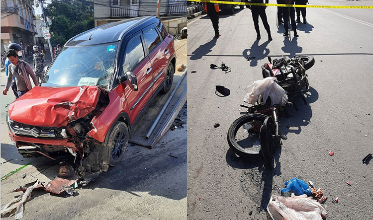 रविभवनमा कार र मोटरसाइकल ठोक्किदा एकको मृत्यु, कार चालक प्रहरी हिरासतमा