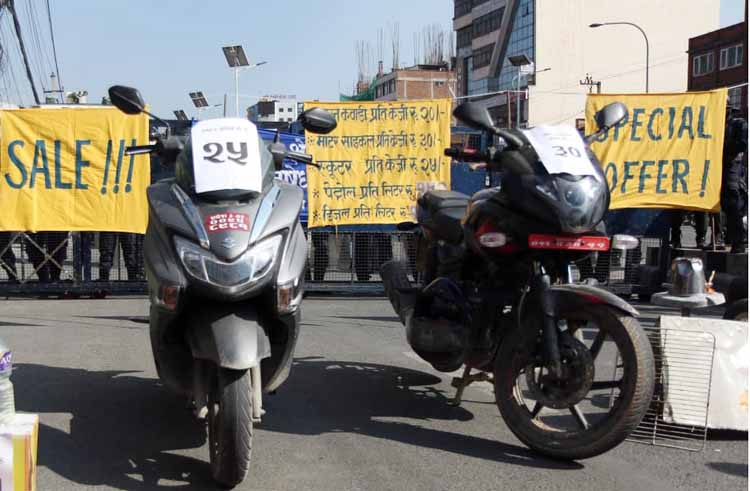 संघले सांकेतिक विरोध स्वरुप पेट्रोल, डिजेलसँगै कवाडी स्कुटर र मोटरसाइकल पनि विक्रीमा राखेका थिए । संघले पेट्रोल प्रतिलिटर १४२ रुपैयाँ, डिजेल प्रतिलिटर १२५ रुपैयाँमा विक्रीम राखेको थियो भने कवाडी मोटरसाइकल प्रतिकिलो ३० रुपैयाँ र स्कुटर २५ रुपैयाँमा विक्रीमा राखेको थियो ।