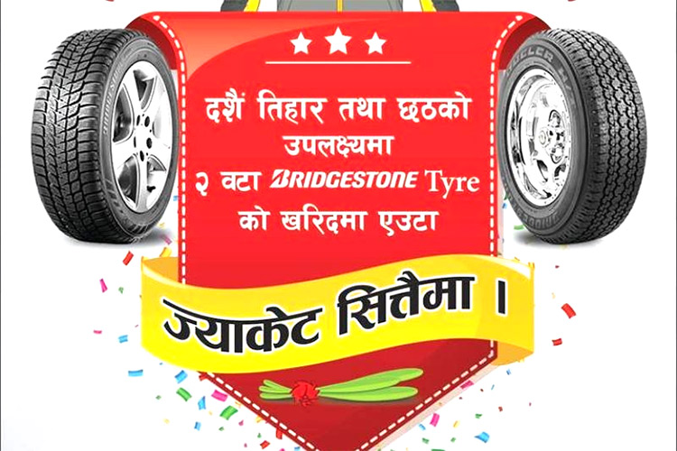 काठमाडौं । दशैं तिहारलाई मध्यनजर गर्दै बिभिन्न कम्पनीले अफर तथा उपहार घोषणा गरिरहेका छन् । यस्तोमा ब्रिजस्टोन टायरको बिक्रेता एसटीसी प्रालिले दुई वटा टायर किन्दा एउटा ज्याकेट सित्तैमा दिने योजना सार्वजनिक गरेको छ ।