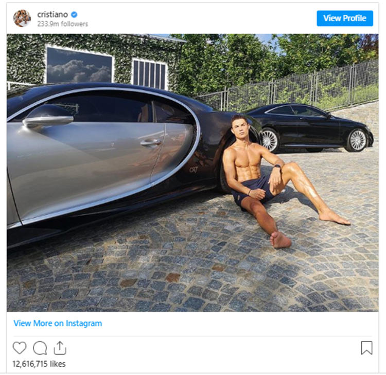 अहिले इटालीको यूभेन्टसबाट व्यवसायीक फुटबल खेलिरहेका रोनाल्डोले किनेको कार बुगाटीले विश्वभर १० यूनिट मात्र उत्पादन गर्ने जनाएको छ । रोनाल्डोले गाडीसँगको आफ्नो तस्विर इन्ट्राग्राममा राखेर आफ्ना फ्यानलाई देखाएका थिए ।