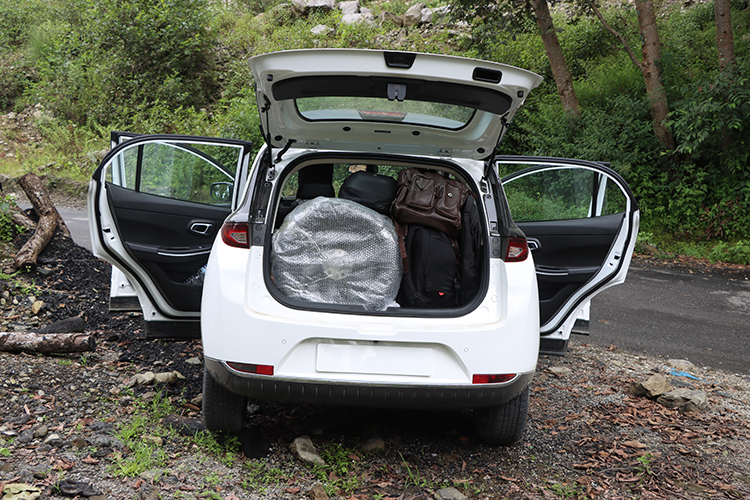 धुन्चेमा भेटिएका एक पीकअप चालकले नजान सल्लाह दिएका थिए । तर, हामी हाम्रो लक्ष्यमा विचलित भएनौं । हामी दायूनको कारमा रसुवागढी बोर्डर पुग्यौं । काठमाडौंबाट ८५ प्रतिशत चार्जमा सुरु भएको हाम्रो यात्रा लगभग १ प्रतिशत चार्ज बाँकी रहँदा घट्टेखोलामा रहेको होटल रिभर भ्यूमा पुगेको थियो ।