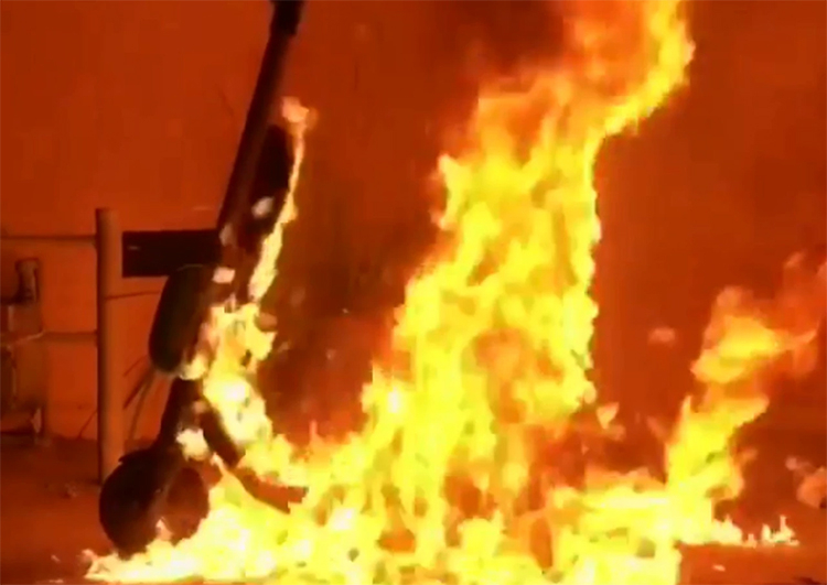 लण्डन फायर ब्रिगेड कम्पनीले सार्वजनिक गरेको एक भिडियोमा चार्जमा राखेको अवस्थाको किक स्कुटर आगो लागेर पड्किएको देख्न सकिन्छ । स्कुटरमा आगो लागेको केही सकेन्डमा नै ब्याट्री पड्किएर घर धुवाले भरिएको देखिन्छ ।