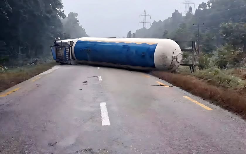 मंगलबार बिहान यूपी १७ ए २१४ नम्बरको एलपी ग्यास बुलेट सडकम पल्टिँदा सवारी आवातजावत अवरुद्ध भएको हो ।
