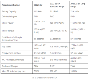 एमजीले नयाँ जेडएसमा ब्याट्रीमा व्यापक परिवर्तन गरेको छ । यसअघि ४४.५ किलोवाट आवरको ब्याट्री प्रयोग भएको जेडएसमा अब ५१.१ किलोवाट आवर र ७२.६ किलोवाट आवरको दुई ब्याट्री अप्सन उपलब्ध हुनेछ ।