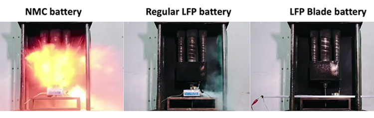 यो व्याट्रीको अर्को सबल पक्ष भनेको सुरक्षा हो । विवाइडीले एनसीएम, एलपीएफ तथा नयाँ व्लेड व्याट्रीलाई नेल पेनेट्रेसन टेस्ट (सियाले घोचेर गरिने प्रयोग) पनि गरेको छ । जसमा व्लेड व्याट्री खरो उत्रेको थियो । यो व्याट्री नेल पेनेट्रेसन टेस्ट गर्दा यसको ताक्रम ३० देखि ६० डिग्री सेन्टीग्रेट मात्र पुगेको थियो । जसको कारण पड्कने र धुँवा आउने कुनै समस्या नदेखिएको कम्पनी दावी गरेको छ । यी नै करण यो व्याट्रीमा ठूला कार निर्माताहरुको नजर परेको हो ।