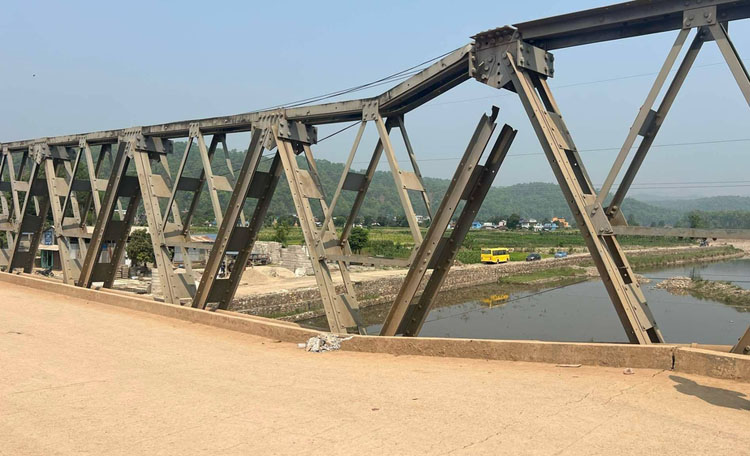 २०८२ वैशाख २९ गते पूर्व-पश्चिम राजमार्ग अन्तर्गत नवलपरासीको चोरमारास्थित भाँचिएको गिरुबारी खोला पुल ।