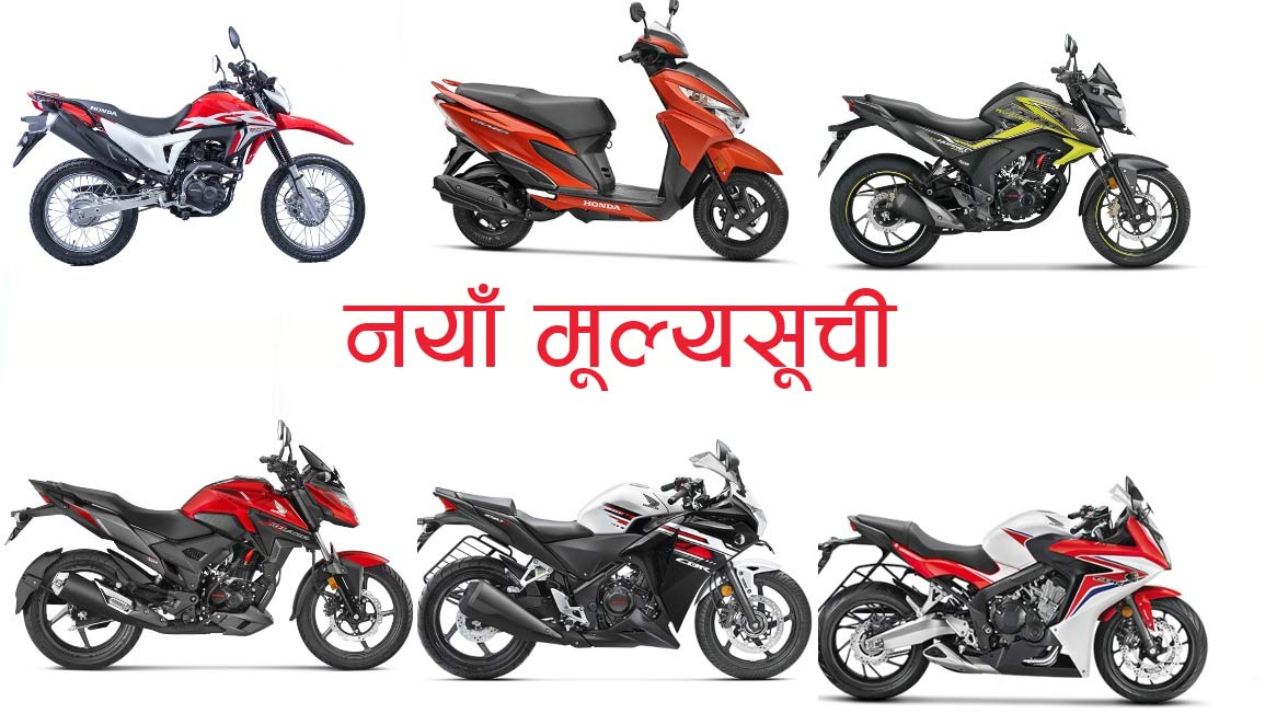साथै, होन्डाको महङ्गो बाइक सीबीआर २५० आर रेस्पोल एबीएसको मूल्यमा सबैभन्दा धेरै अर्थात १६ हजार रुपैयाँ थपिएको छ । मूल्यबृद्धिसँगै यो बाइकको मूल्य ७ लाख ९२ हजार ९ सय रुपैयाँ निर्धारण गरिएको छ ।