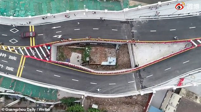 सरकारले घरको चारैतिर राजमार्गको पुल निर्माण गर्यो र घरलाई त्यहीँ रहन दियो । अहिले महिला गाडीहरुको बीचमा आफ्नो जीवन बिताइरहेकी छिन् । महिलाले राजमार्ग बन्नुभन्दा अगाडि १० वर्षसम्म घर बेच्न अस्वीकार गरिरहिन् । सरकारले उनलाई दिन चाहेको मुआब्जा लिन पनि अस्वीकार गरिरहिन् । उनको यो १ तले घर ४० वर्गमिटरको छ । ग्वांडोंग टिभी स्टेशनका अनुसार यो घर अहिले ४ लेन ट्राफिक लिंकको बीचमा एक खाल्डोमा छ ।
