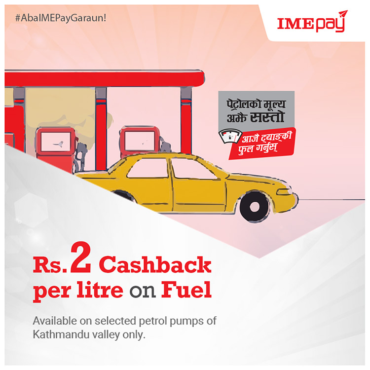 आइएमई ग्रुप अन्तर्गतको मोबाइल वालेट आइएमई पेबाट उपभोक्ताले पेट्रोल/डिजेलको भुक्तानी गर्दा प्रतिलिटर २ रुपैयाँ छुट पाइने छ । आइएमई पे एपले डिजेल र पेट्रोल दुवैलाई समेटेको भएपनि कम्पनीले पेट्रोलमात्र लेखेर प्रमोसन गरेको जनाएको छ ।