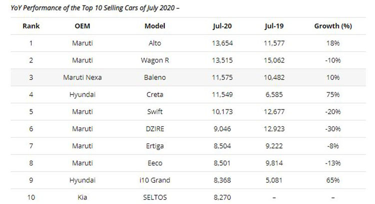 सन् २०१९ को जुलाईमा कुल १ लाख ९९ हजार ५३४ यूनिट प्यासेन्जर कार बिक्री भएको थियो भने गत जुलाई महिनामा १ लाख ९७ हजार ५२३ यूनिट कार बिक्री भएको छ । यसले कोरोना संकटपछि अटोमोवाइल व्यवसाय लयमा फर्किएको अनुमान लगाउन थालिएको छ ।
