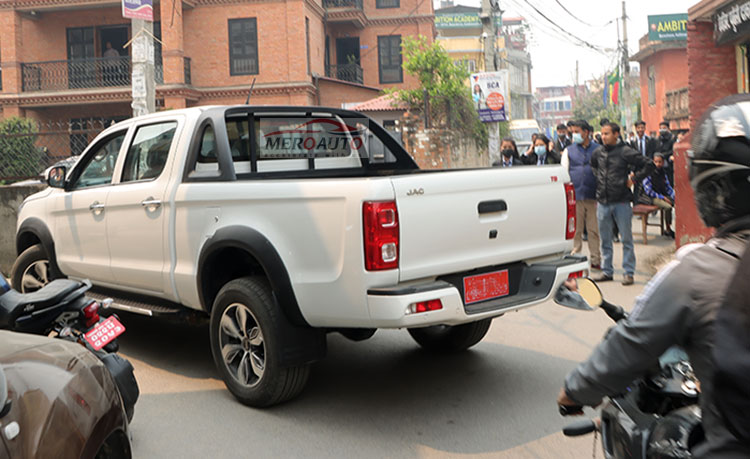 परिक्षणमा देखिएको पीकअप ‘जेएसीको टी ८’ मोडल हो । यसको लम्बाई ५६१५ एमएम, चौडाई १८८० एमएम र उचाई १८३० एमएम रहेको छ । यसको ह्वीलवेस ३३८० एमएम रहेको छ । यसमा करिब २०० एमएमको ग्राउन्ड क्लियरेन्स पाउन सकिन्छ ।