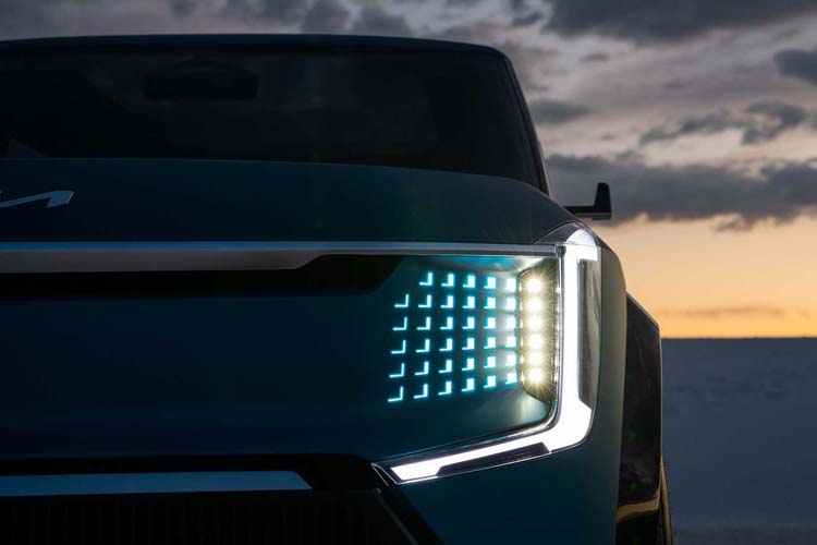 इजीएमपी प्लायाटफर्ममा तयार भएको हुनाले यो एसयूभीमा रियर ह्वील वा अल ह्वील दुवै ड्राइभिङ अप्सन प्राप्त हुनेछ । किया ९ को कन्सेप्ट डिजाइन निकै फ्यूचरीस्टिक देखिएको छ ।