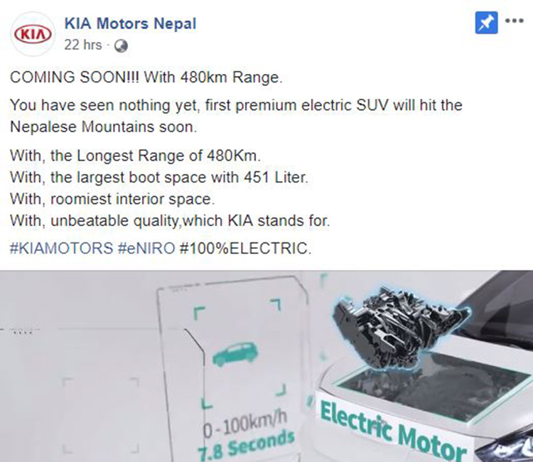 विगत लामोसमयदेखि नेपाली बजारमा कियाको शोल ईभी बिक्री वितरण गर्दै आएको कन्टिनेन्टल्स प्रालिले कियाको नयाँ कम्प्याक एसयूभी निरो नेपाली बजारमा ल्याउने तयारी सुरु गरेको छ ।