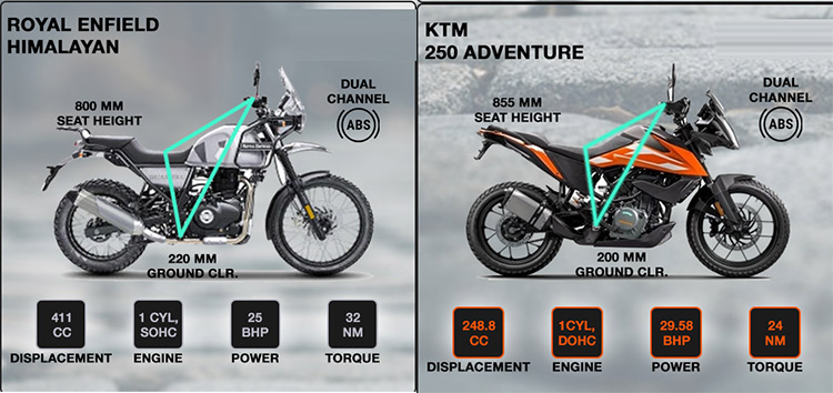 केटीएसम २५० एड्भेन्चर र हिमालयन बीच रहेको तुलनात्मक भिन्नता यस प्रकार रहेको छन् ।