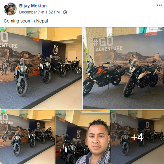 केटीएमको ड्युक ३९० नेपाली बजारमा पनि बिक्री वितरण भइरहेकाले नयाँ एडभेन्चर मोटरसाइकल पनि नेपाल आउने भएको हो ।