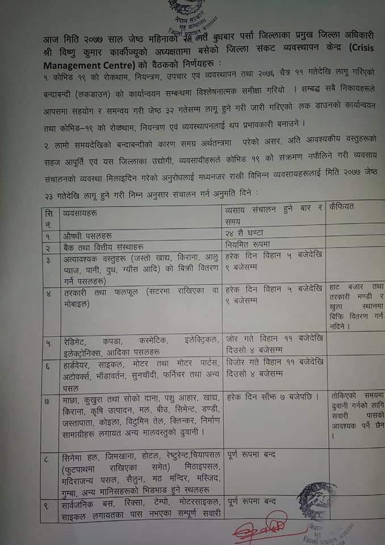 कोभिड १९ रोकथाम, नियन्त्रण, उपचार एवं व्यवस्थापन गर्न गत चैत ११ देखि हुँदै आएको लकडाउन अब खुकुलो हुन लागेको हो ।