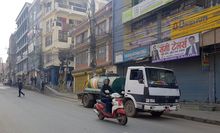 काठमाडौं । काठमाडौं महानगरपालीकाले उपत्यका बिभिन्न स्थानमा ब्रुमरको प्रयोग गरेर सडकमा रहेको धुलो सफागर्ने काम सुरु गरेको छ ।