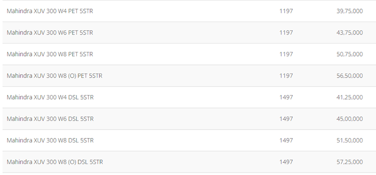 सुरुमा नै आफ्नो इन्ट्री भेरियन्टको मूल्य ३९ लाख ७५ हजार कायम गरेर विक्री सुरु भएको एक्सयूभी ३०० को मूल्य अहिले पनि सबै भेरियन्टको एउटै रहेको छ ।
