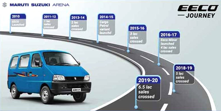 मारुती सुजुकीले बीएस ६ मापदण्डमा ल्याएको इको ९ औं मोडल हो । यसअघि कम्पनीले अल्टो, बलेनो, एक्सएल ६, स्वीफ्ट, सियाज, एसक्रस, एर्टिगा लगायतका मोडललाई बीएस ६ मा ल्याई सकेको छ ।