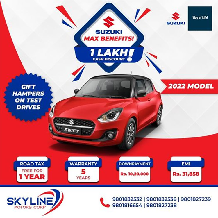 काठमाडौं । मारुती सुजुकी स्वीफ्ट किन्न चाहने ग्राहकलाई लक्षित गर्दै स्काईलाइन मोटर्सले मनसुन स्कीम चलाई रहेको छ । कम्पनीले चलाएको स्कीममा १० लाख २० हजार डाउन पेमेन्ट वा मासिक ३१ हजार ८५८ रुपैयाँ किस्ता मध्ये एक छनोट गरेर गाडी दिने भएको हो ।