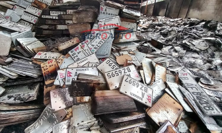 काठमाडौंको मीनभवनस्थि यातायात व्यवस्था विभागको पछाडि रहेको इम्बोस्ड नम्बर प्लेट छाप्ने प्लाण्टमा आगलागी हुँदा ६ लाख बढी प्लेट जलेर खरानी भएको हो ।