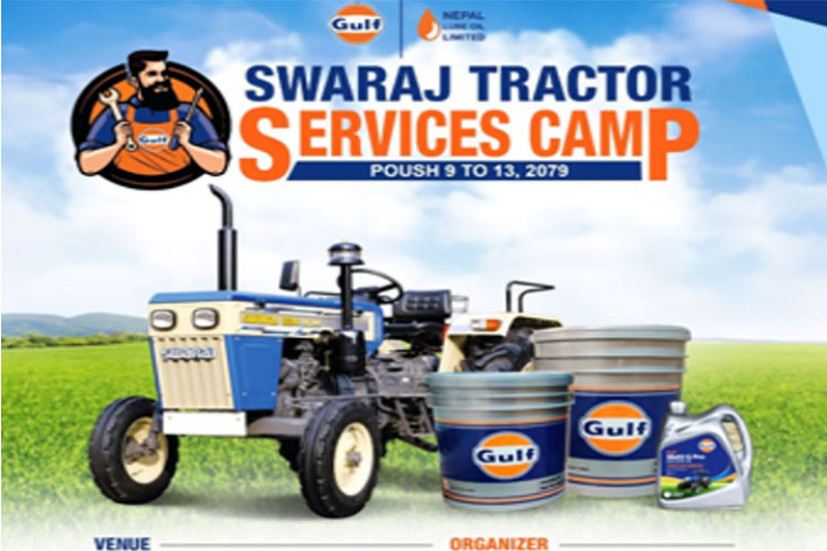 ‘स्वराज ट्रयाक्टरका ग्राहकहरुलाई थप इन्जिन, ल्युब र समय समयमा गर्नुपर्ने सर्भिसिङको लाभ सम्बन्धमा ससुचित गर्न र गल्फ लुब्रिकेन्टलाई निरन्तरता दिन यो कार्यक्रम आयोजना गरिएको हो। सो क्याम्पमा १७० भन्दा धेरै ट्रयाक्टर धनीहरु सहभागी थिए, ग्राहकहरुको यो उत्साहले हामीलाई थप प्रेरणा मिलेको छ। सबै सहभागीहरुलाई हामी धन्यवाद ज्ञापन पनि गर्न चाहान्छौं,’ कम्पनीले भनेको छ ।
