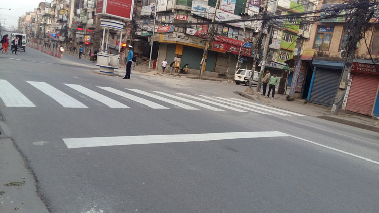 काठमाडौं । माथि चित्रमा रहेको जेब्राक्रसिङ काठमाडौं उपत्यकाको नै हो । निर्माणको क्रममा रहेको जेब्राक्रसिङ पहिलेको भन्दा फरक रहेको छ । यसको मतलव अन्तर्राष्ट्रिय स्तरको रहेको छ, जहाँ सवारीसाधन रोक्नका लागि छुट्टै घेरा बनाइएको छ ।
