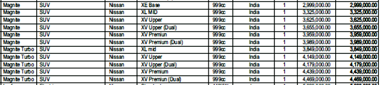 म्याग्नाइट एक्सएल मिड भेरियन्टको मूल्य अहिले ३३ लाख २५ हजार बनाएको छ । छ महिना अघि यसको मूल्य ३१ लाख ९३ हजार थियो । यसमा १ लाख ३२ हजार मूल्य बढिसकेको छ ।