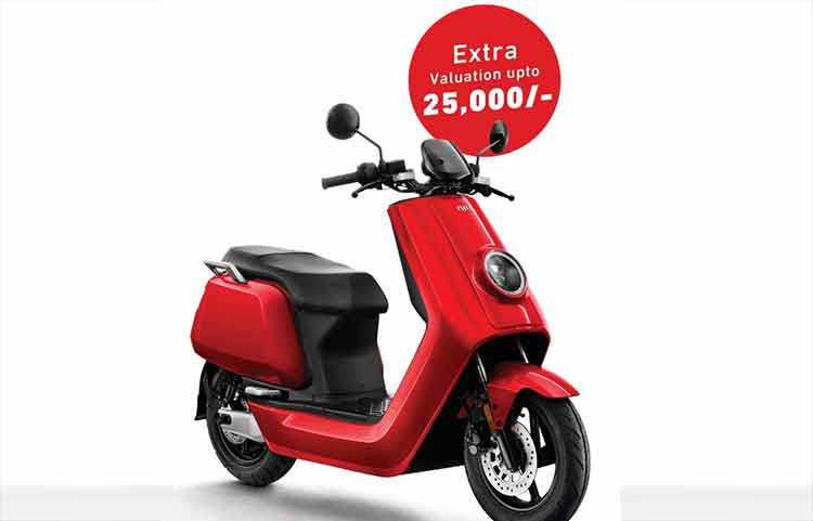 यो योजनामा ग्राहकले आफुसँग भएको कुनै पनि पुरानो मोटरसाइकल तथा स्कुटरसँग एनआईयूको नयाँ इलेक्ट्रीक स्कुटर एक्सचेन्ज गर्न सक्नेछन् । कम्पनीका अनुसार ग्राहकको पुरानो मोटरसाइकल तथा स्कुटरको बजार मूल्याङ्कनमा २५ हजार थप मूल्याङ्कन दिइनेछ । साथै नगदमा स्कुटर खरिद गर्ने ग्राहकले नगद छुटसमेत प्राप्त गर्न सक्नेछन् ।