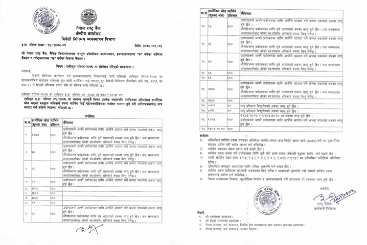 साथै, राष्ट्र बैंकले परिपत्रमा विद्युतीय गाडी तथा दुई पाङ्ग्रे सवारीको हकमा भने मार्जिन राख्नु नपर्ने व्यवस्था गरेको छ ।