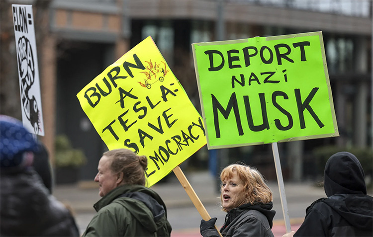 अमेरिकामा नयाँ राष्ट्रपतिमा डोनाल्ड ड्रम्पले सपथ लिएसँगै टेस्लाका सीईओ इलन मस्कको सक्रियतामा संघीय कर्मचारीको कटौती गर्दा कामबाट हात धोएका व्यक्तिहरूले टेस्लाको डिलर अगाडि गएर प्रदर्शन गरेका थिए ।