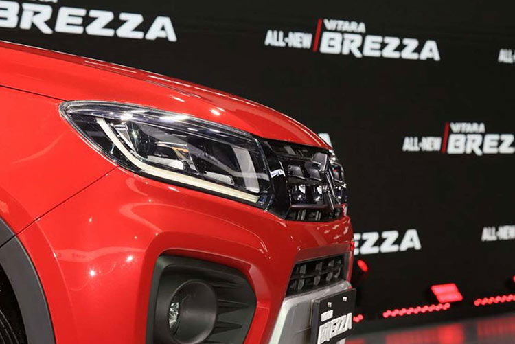 अगाडिको भागमा केही परिमार्जन सहित आएको ब्रेजामा रि-डिजाईन हेडल्याम्प र एलइडी डेटाइम रनिङ लाईट प्रदान गरिएको छ । यसको टप भेरियन्टमा ग्रिलमा क्रोमको प्रयोगले गाडी निकै आकर्षक देखिएको छ । यसले गाडीलाई पहिलेको तुलनामा निकै सार्प र स्पाेर्टी देखाएको छ ।