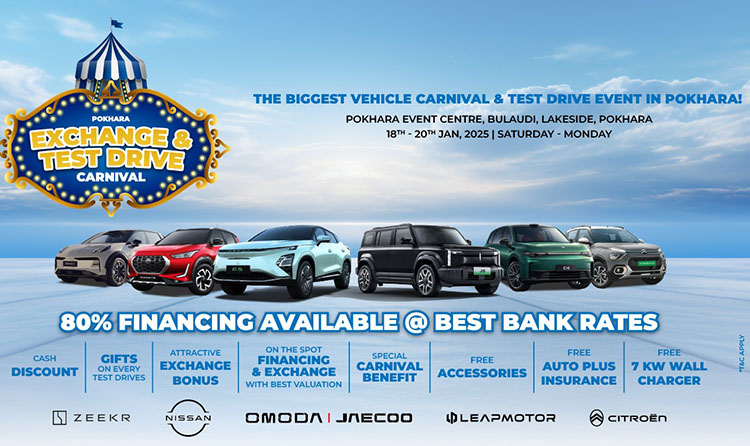 साथै सो कार्निभलले सहभागीहरूलाई प्रख्यात गाडीका ब्राण्डहरूको नवीनतम मोडलहरूको उत्साहजनक टेस्ट ड्राइभका साथै बजारको उत्कृष्ट प्रतिस्पर्धात्मक एक्सचेन्ज अफरहरूको लाभ लिन एक महत्वपूर्ण अवसर प्रदान गर्नेछ ।