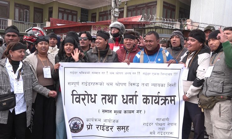 काठमाडौं । नेपालमा संचालित राइड शेयरिङ कम्पनीहरूले मनोमानी गरेको भन्दै ‘प्रो राइडर समूह’ आन्दोलनमा उत्रिएको छ । उनीहरूले आइतबार काठमाडौंको बल्खुमा कालो पट्टी बाँधेर विरोध प्रदर्शन गरेका हुन् ।