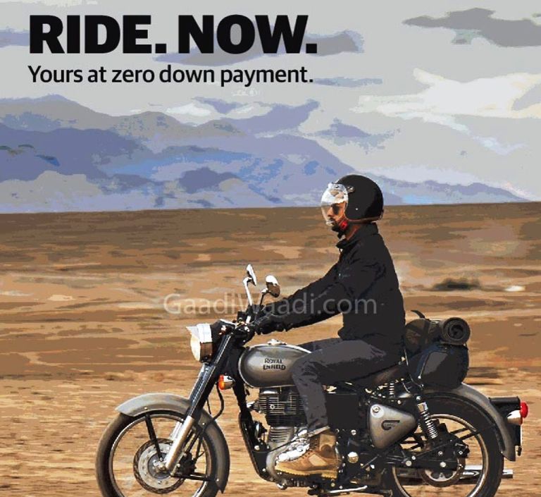 भारतीय बजारमा रोयल इन्फिल्डले शून्य प्रतिशत डाउन पेमेन्ट अफर सार्वजनिक गरेको छ । यसका लागी ग्राहकको कुनैपनि बैंकमा खाता हुनुपर्ने छ । कम्पनीको बुलेटको कुनैपनि मोडल अब ग्राहकले सय प्रतिशत नै फाइनान्स सुबिधामा खरिद गर्न सक्नेछन् । यो योजना अन्तर्गत ग्राहकले खरिद प्रकियाको शुल्क तिरेर बाइक घर लग्न सक्नेछन् ।