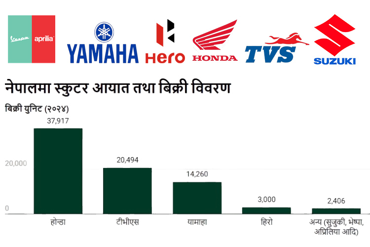 सन् २०२४ मा अन्य ब्राण्डका २ हजार ४०६ युनिट स्कुटर नेपाल भित्रिएको तथ्यांक छ ।