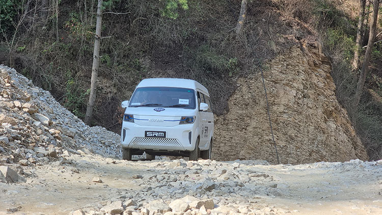 पुजा कन्ट्रक्सनले बिक्री गर्दै आएको एसआरएमका विद्युतीय माइक्रो भ्यान नेपाली सडक सुहाउँदै बनाएर ल्याएसँगै हामीले यसको टेष्ट ड्राइभ गरेका थियौं । रुटमा चल्ने बस भएको कारण उक्त भ्यानलाई हामीले दुई दिन चलायौं । पहिलो दिन काठमाडौं–टोखा–छहरे–गल्छीहुँदै चितवनसम्म चलायौं । दोस्रो दिन चितवनबाट हेटौंडा हुँदै चित्लाङ निस्केर काठमाडौं आएका थियौं ।