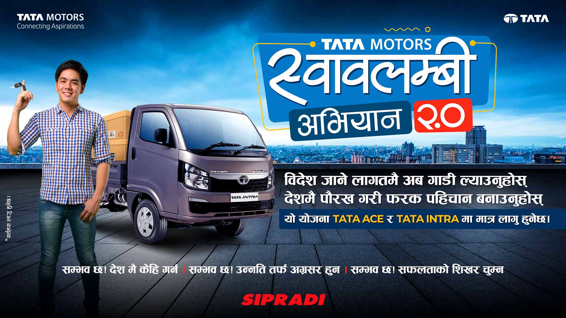 काठमाडौं । टाटा मोटर्सको नेपालका लागि आधिकारीक बिक्रेता सिप्रदी ट्रेडिङ्गले कामका लागि विदेश जान लागेका युवाहरुलाई लक्षित गर्दै ‘टाटा मोटर्स स्वावलम्बी अभियान २.०’ अभियान संचालन गरेको छ । कम्पनीले चलाएको यो अभियानले चालक काम गर्न विदेश जानलागेका युवाहरुलाई नेपालमा नै स्वरोजगार बनाउने लक्ष्य लिएको हो ।
