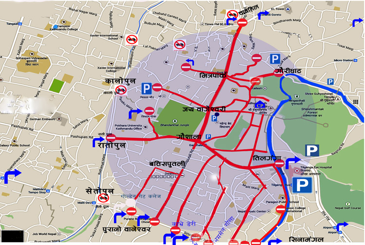 ज्ञानेश्वर, मैतिदेवी मोड, रोतोपुल हुँदै गौशाला तर्फजाने गाडीलाई रातोपुलमा नै रोकिने ट्राफिक प्रहरीले जनाएको छ । द्धारिका होटलको पछाडिको मार्गसमेतमा प्रबेश रोक लगाइएको छ ।