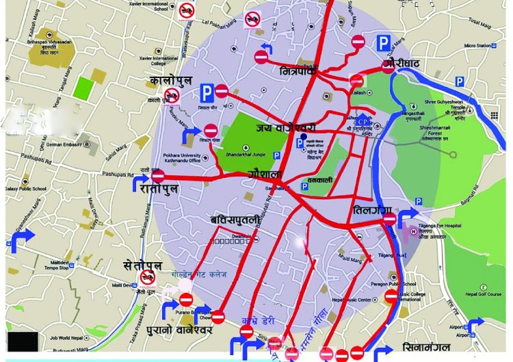 शिवरात्रीका दिन यी सडकमा सवारी चलाउन नपाइने, ६ ठाउँमा पार्किङ व्यवस्था