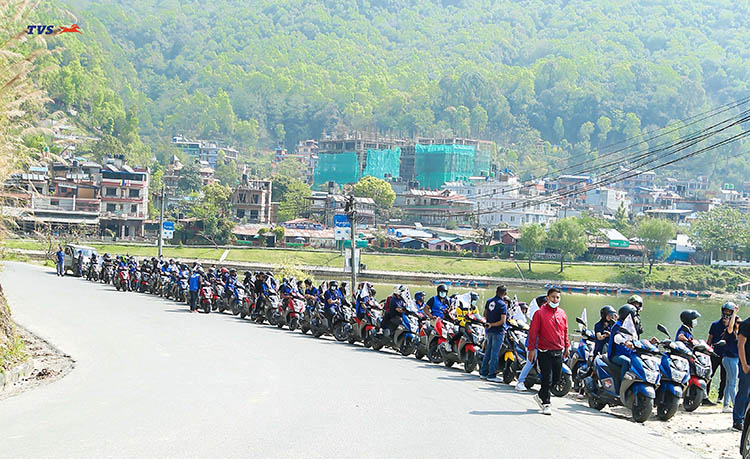 पोखरा । टीभीएस मोटरको आधिकारिक वितरक जगदम्बा मोटर्स प्रालिले पोखरामा आफ्नो पहिलो एनओजी (एन्टर्क ओनर्स ग्रुप) राइड सम्पन्न गरेको छ । गत चैत्र १२ गते शनिबार आयोजना भएको उक्त राइड पोखराको नयाँबजार स्थित बतास ब्रदसको टीभीएस शोरुमबाट शुरु भएर लेकसाइड, हेम्जा हुँदै नौडाँडा स्थित हिमालयन देउराली रिसोर्टसम्म पुगेको थियो ।
