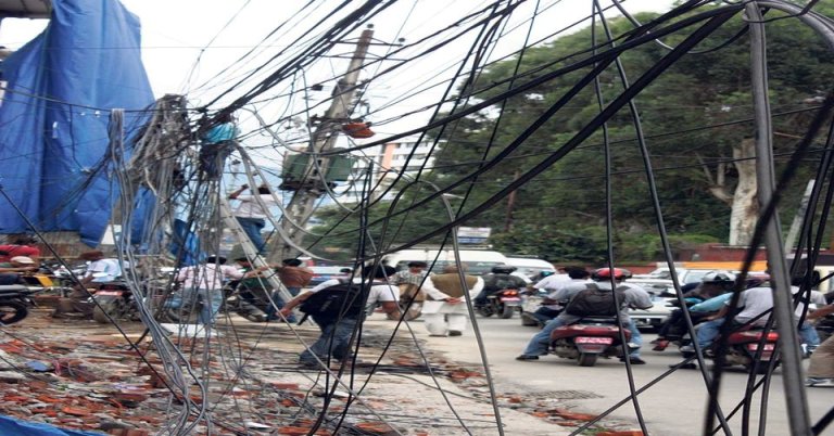 काठमाडौं । राजधानी काठमाडौं सडकका फुटपाथहरु बिजुली, केवल, टेलिफोन लगायतका तारले पुरिन थालेका छन् ।