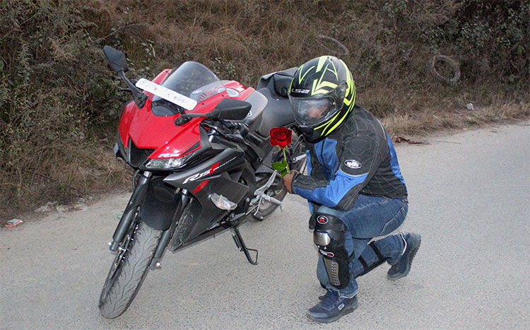 अनि केही त खानै पर्यो । मोटरसाइकललाई फुल ट्याङ्क पेट्रोल हालिदिनुस् । ए अनि गुलाफको फूल लिन नभुल्नु नि प्रेमिका (मोटरसाइकल) रिसाउन सक्छिन् । अनि मोटरसाइकलसँग एकछिन समय बिताएर केही फोटो खिच्नुस् ।