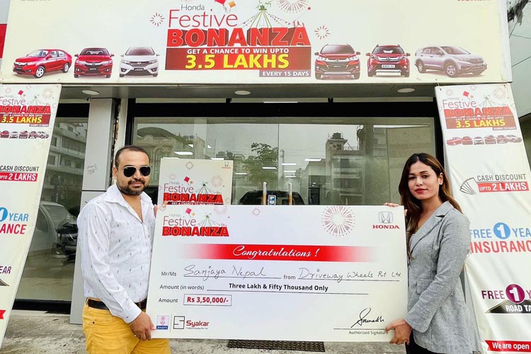 नेपालका लागि होन्डा कारको आधिकारिक बिक्रेता स्याकार ट्रेडिङ्ग कम्पनी प्रालिले दशैं, तिहार र छठलाई लक्षित गर्दै ल्याएको “होन्डाको फेस्टिभ बोनान्जा” योजना अन्तर्गत पहिलो विजेता लक्कीड्र मार्फत कार्तिक ५ गते घाेषणा गरेको छ ।
